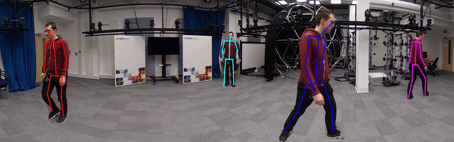 An ideal solution to this would therefore need to maximise both scene coverage and camera overlap, something which can easily be achieved using wide angle, panoramic or 360° cameras. Through careful placement of these cameras, we simultaneously view the entire scene, and also produce multiple views of an individual in order to inform our pose estimate. However, such cameras bring their own representation problems, hampering the performance of existing solutions, or preventing them from operating entirely. Therefore, we explore this facet of the problem, producing tracking and pose estimation solutions that natively function from 360° imagery.