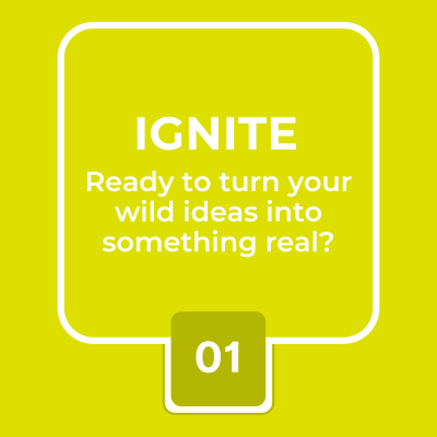 Explore and shape ideas into viable concepts. Ignite is where everyone starts, whether you are testing your first idea or already running a venture. Build confidence, experiment with entrepreneurial tools, and learn how to pitch clearly.