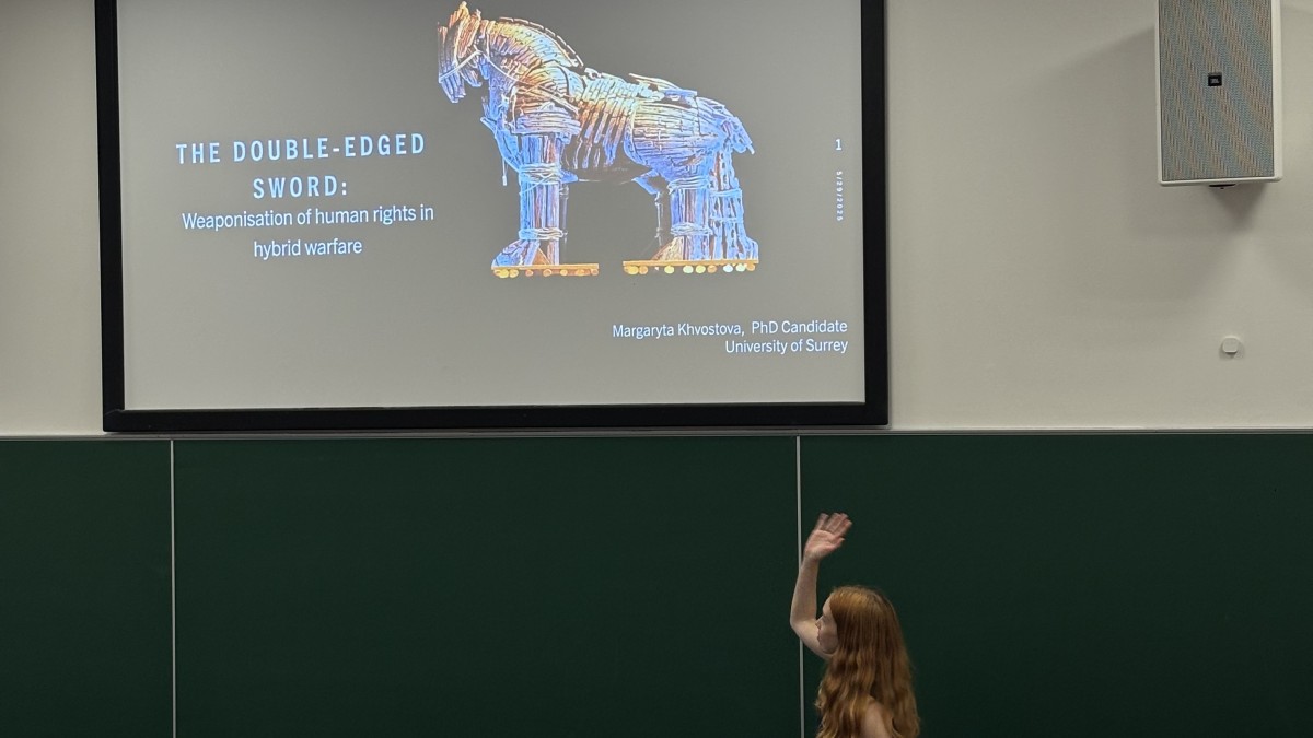 Following this, the first panel of the day, chaired by Dr Dimitris Skleparis from Newcastle University, addressed the multifaceted threats to democracy, human rights, and liberty both within and outside Europe. Margaryta Khvostova from the University of Surrey focused on the concept of hybrid warfare, analysing how hybrid actors exploit the language and frameworks of human rights to delegitimise their opponents. Edo Filz from the Hebrew University explored how resistance to structural social change, particularly immigration, shapes parties’ adoption of exclusionary logics within the welfare state. Filz proposed rethinking the welfare state as a means of contesting social boundaries, rather than reinforcing them. Anna Malyszko from SGH Warsaw introduced a gendered perspective by examining the Polish security discourse in the context of the 2025 presidential campaign. Malyszko discussed how discourses of national security are used to reshape human rights agenda. Finally, Christos Papastylianos from the University of Nicosia offered a legal perspective, drawing on constitutional theory and amendment culture to explore the state of electoral democracy in contemporary liberal regimes.