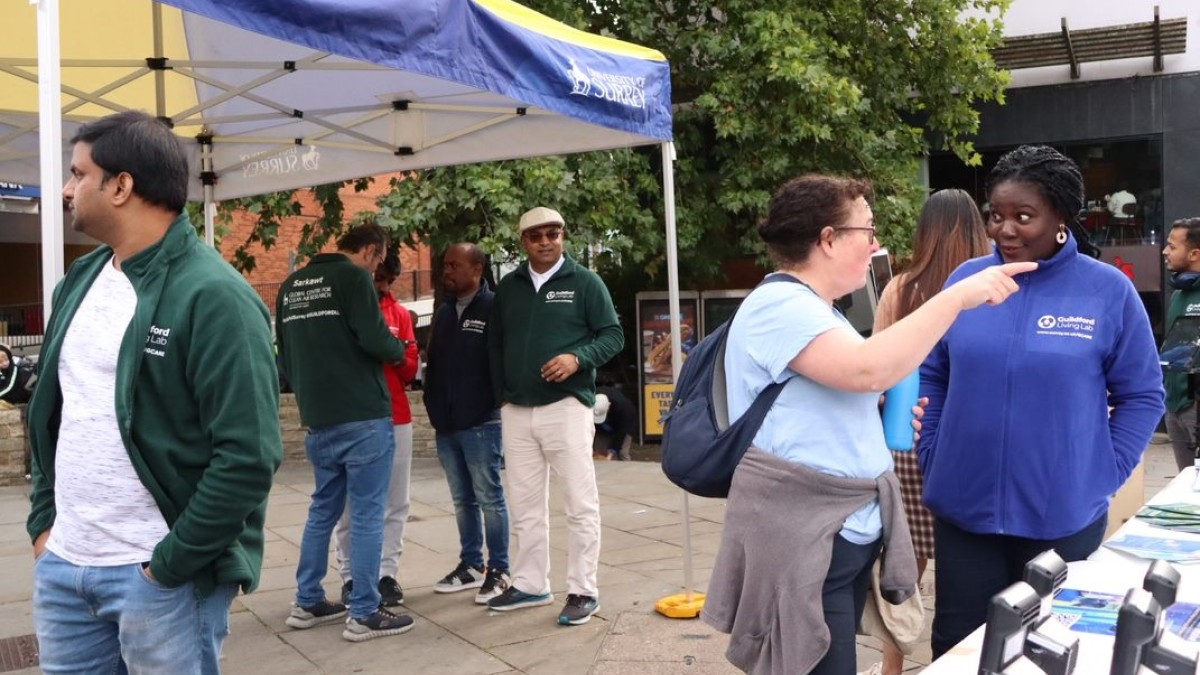 A team of researchers from the University’s Global Centre for Clean Air Research (GCARE) presented their work on a stand in Guildford’s town centre. Using an interactive display, leaflets and other tools, they shared their hands-on experience of air pollution and climate literacy, talking with visitors about projects the Centre has undertaken on green infrastructure and air pollution in schools. The day was organised in collaboration with Zero Carbon Guildford, a community-led climate action plan.
