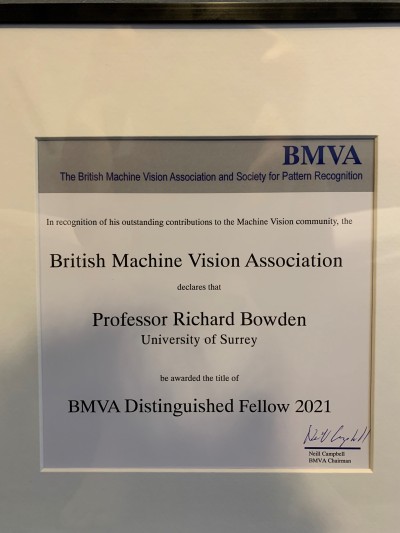 Professor Bowden is the fourth member of CVSSP to be honoured with the prestigious BMVA Distinguished Fellowship, others are Professor Josef Kittler (2002), Professor Maria Petrou, and Professor John Illingworth. See all BMVA distinguished fellows.