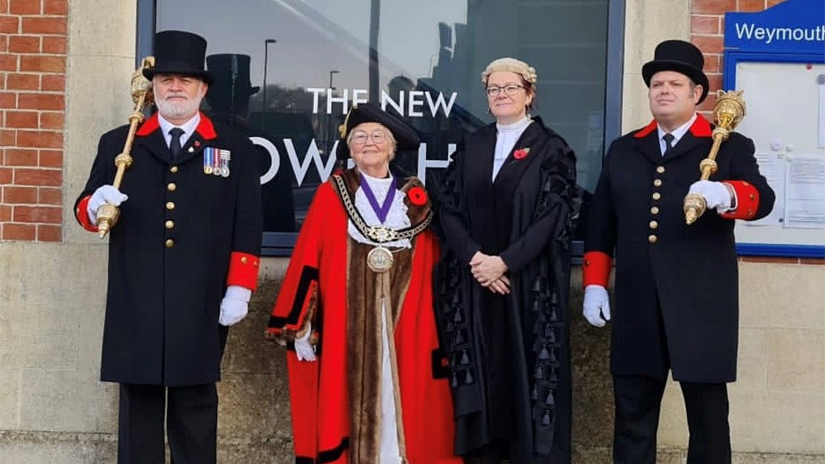 Jane attending a ceremony and sharing the limelight with the Mayor of Weymouth