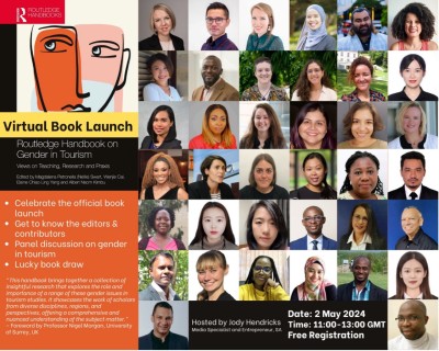 This event which included a panel discussion with four esteemed authors from four continents, bringing diverse perspectives on gender in tourism.  Together, the panellists will address issues related to inclusive research, teaching a gender-conscious curriculum, and intersectional gender relations in the workplace and tourism entrepreneurship. This groundbreaking book features insights from 37 chapter contributors from across the globe and promises an enriching exploration of gender issues in tourism studies.  The recording of the launch is available on YouTube: https://youtu.be/qVDzjkEdXeM
