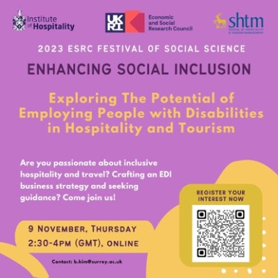 As part of the 2023 ESRC Festival of Social Science: Enhancing Social Inclusion, CrEDIT Club members organised a panel session to discuss the importance of making the hospitality and travel sector inclusive. Drawing on the insightful narratives from established industry practitioners, individuals with disabilities, and inclusivity experts, issues unpacked during the panel also included discussions on the importance of developing an inclusive EDI business strategy, issues to be considered and were to seek guidance and support.